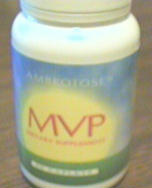 MVP ingredients cellulose,calcium carbonate, dioscorea(wild yam 10:1),kola nut(standardized), country mallow(standerdized),atlantic kelp, cayenne pepper, silica, steric acid, magnesium stearate and ambrotose complex_(naturally occuring plant polysaccharides,including freeze-dried aloevera gel extract - manapol powder) and soy lecithin
